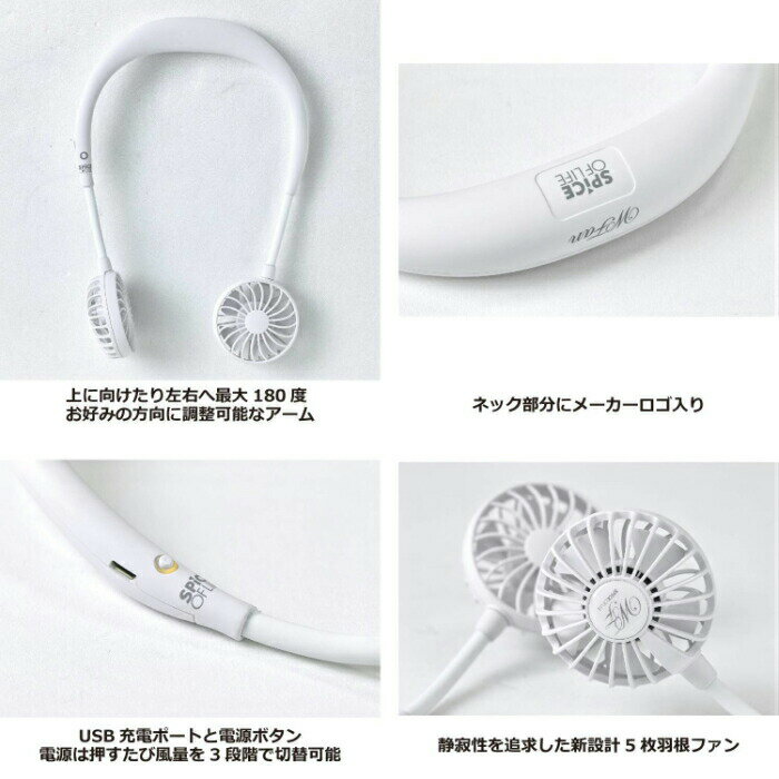 ポイント3倍!【ダブルファン】 ハンズフリー扇風機 USB充電式 ブラック ホワイト スパイス 新商品 夏季限定 数量限定 spice ギフト ラッピング 送料無料 アウトドア スポーツ観戦 ガーデニング