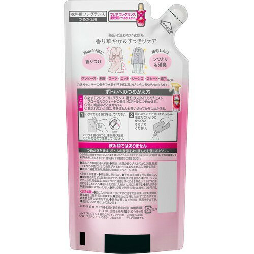 お店TOP>掃除・洗濯>加香剤>フレア フレグランス ミスト フローラル&スウィート 詰め替え (240ml)【フレア フレグランス ミスト フローラル&スウィート 詰め替えの商品詳細】●華やかに香りづけ、シワもとれる衣料用お手入れ剤です。