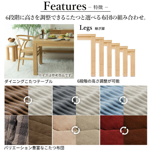 高さ調節が6段階まで可能な高機能こたつと、オシャレなダイニング掛け布団のお得セット。