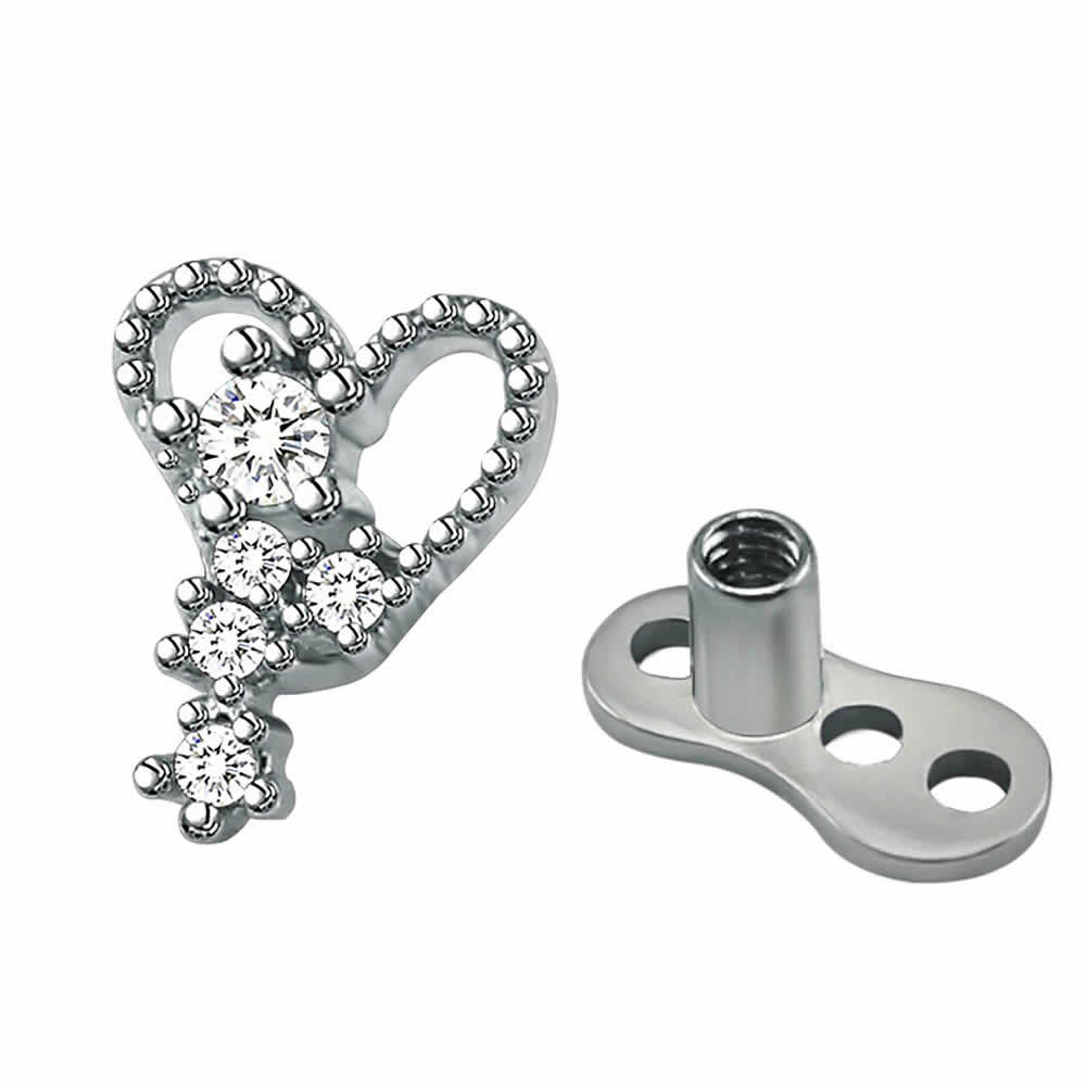 クリスタルのジルコニアでハートをデザインしたパーツをダーマルアンカーのベースにセットした逆ネジタイプのインターナルボディピアス。