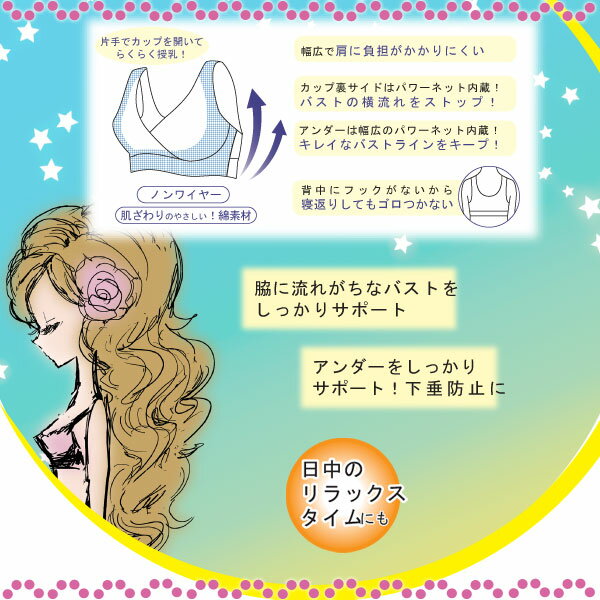 \ おやすみシリーズ / おやすみブラ おやすみ骨盤パンツ おやすみブラ&骨盤パンツセット脇に流れがちなバストをしっかりサポート!おやすみブラ 片手でサッと授乳できるクロスオープンタイプ! 幅広ショルダーで肩に負担がかかりにくい 取り外し可能なカップ付き 就寝時や日中のリラックスタイムにおすすめ やわらか・らくちん・寝ている間もバストラインを キープしてくれるおやすみブラ 片手でカップがすぐに開くから授乳がラクチン カップ裏サイドにパワーネットが内蔵されているので バストの横流れを防止。