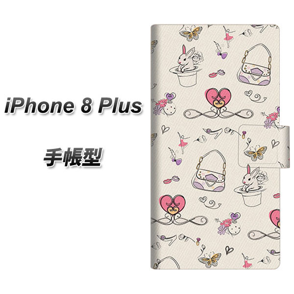 iPhone8 PLUS 手帳型スマホケース【705 うさぎとバッグ】(アイフォン8 プラス/IPHONE8PULS/スマホケース/手帳式)