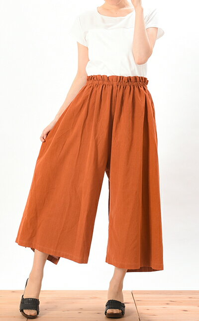 モデル身長:164cm 着用カラー:ボルドー(『patan パタン(ナチュラル)』とのコーディネイト) マタテニィ兼用パンツ カジュアルコーデにおすすめのボトム 前から見たシルエットと後ろから見たシルエットで 印象が変わるラップデザインのボトムです。