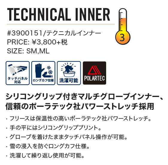 eb's エビス【TECHNICAL INNER:LOGO/WH】シリコングリップ付のマルチグローブインナー、テクニカルインナー!!手首も暖かいロングカフ仕様!! スキー スノボ グローブ ユニセックス ポーラテックパワーストレッチ採用[メール便対応可]