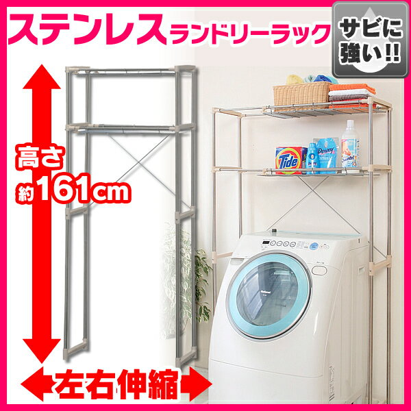 ランドリーラック 伸縮 2段 SLR-160 ステンレス 洗濯機 ランドリー ラック ランドリー収納 収納 洗濯機収納 棚付き 洗濯機収納 脱衣所 洗面所 スリム 新生活 組み立て簡単 洗剤 柔軟剤 洗濯小物 ホワイト おしゃれ アイリスオーヤマ