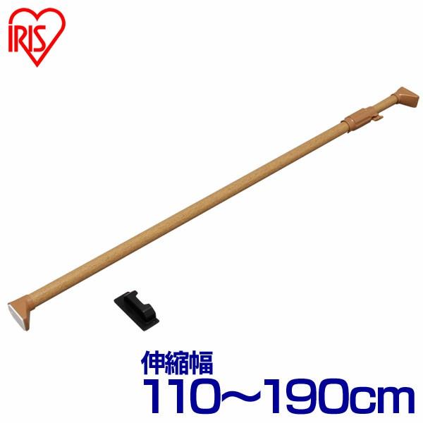 つっぱり棒 伸縮棒 幅110〜190cm H-MNPJ-190 アイリスオーヤマ つっぱり棒 伸縮棒 木調 強力 脱衣場 洗濯物 洗濯機 室内物干し 突っ張り棒 ダークブラウン つっぱり式 突っ張り ランドリーラック パーテーション ベランダ 押入れ ハンガー