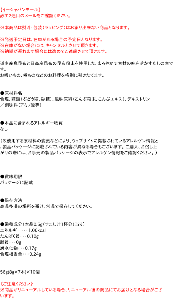[関連キーワード:調味料 ダシ 出汁 顆粒 コブ こぶ こんぶ 和風 和食]【イージャパンショッピングモール】内のみのお買い物は、送料一律でどれだけ買っても同梱する事が出来ます。