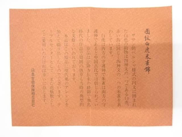 【茶道具・着物】送料無料リサイクル 園紋白虎朱雀錦テーブルセンター【送料無料】