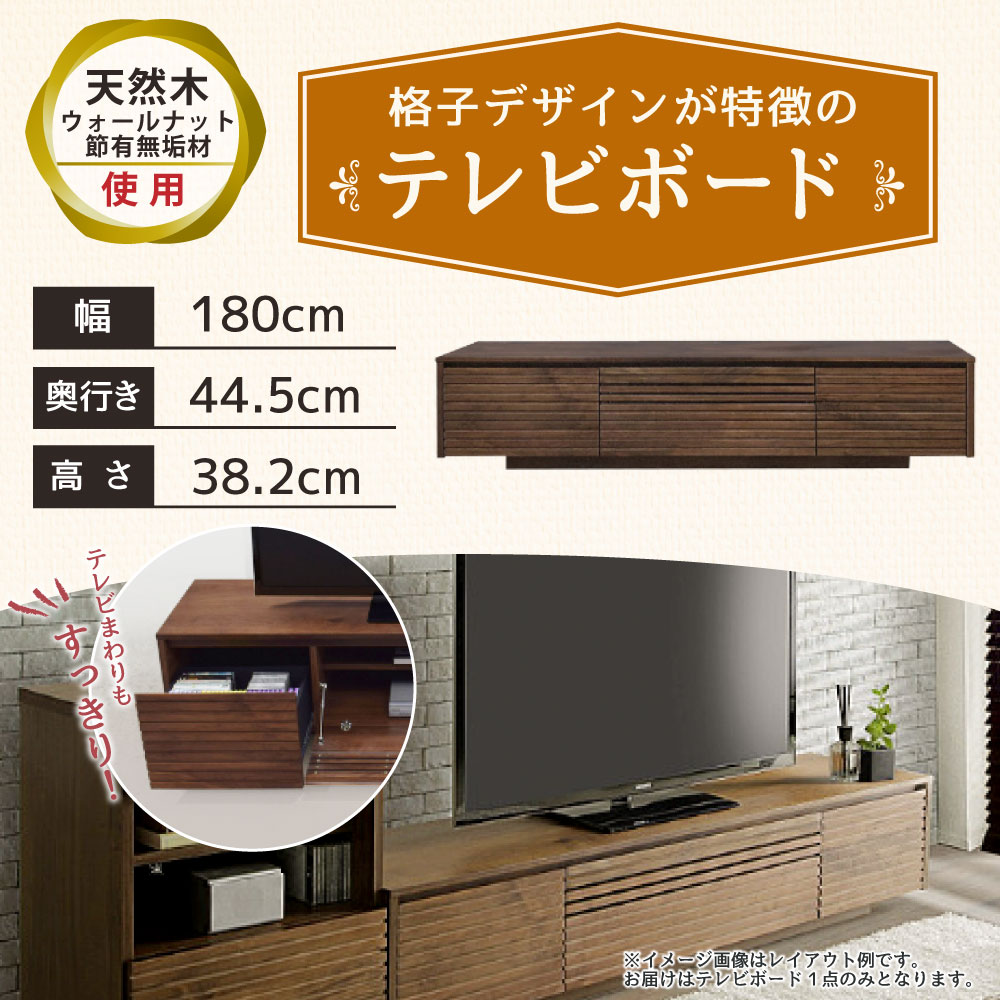【ふるさと納税】テレビボード 幅180cm 奥行き44.5cm 高さ38.2cm テレビ台 ロータイプ AV収納 格子 天然木 ウォールナット 節有無垢材 テレビボード 棚 木製 ブラウン 家具 収納 スリム リビング インテリア 送料無料