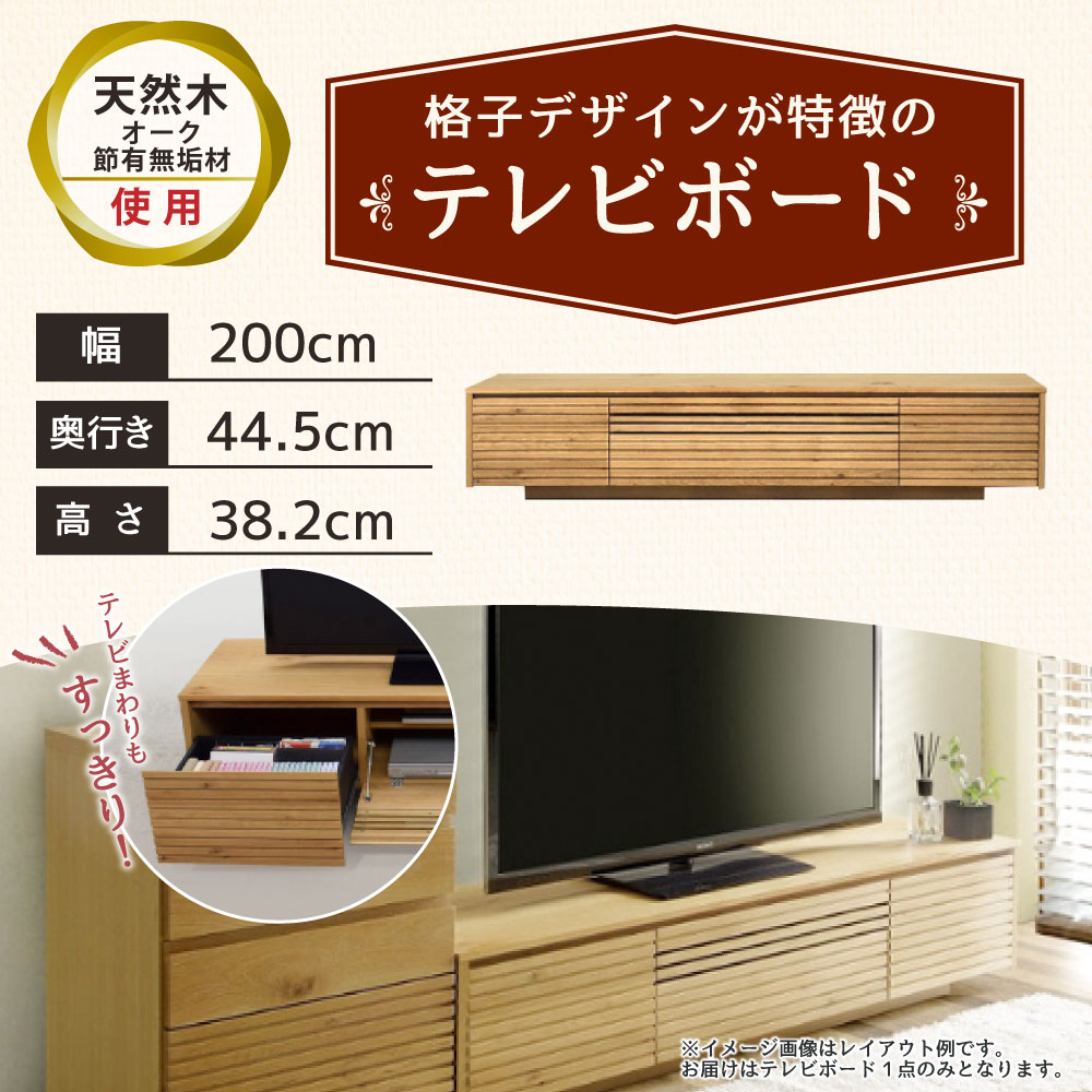 【ふるさと納税】テレビボード 幅200cm 奥行き44.5cm 高さ38.2cm テレビ台 ロータイプ AV収納 格子 天然木 オーク 節有無垢材 テレビボード 棚 木製 ナチュラル 家具 収納 スリム リビング インテリア 送料無料