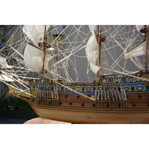 商品説明:竜骨作りで、一枚一枚の板を張り合わせて作成、一部装飾がメタル以外すべて木製でプラスチック類は使用されておりません。