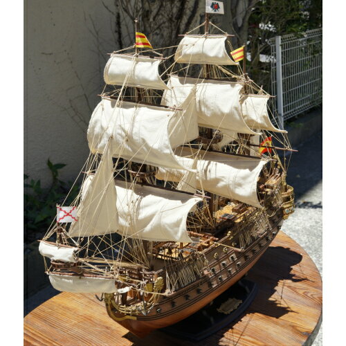 帆船説明:最も大掛かりなスペイン艦隊の1つである1690年建造された、大小各種110門で武装されたフリゲート戦艦である。