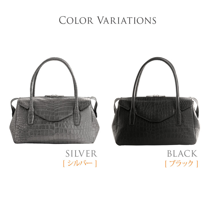 HALEINE アレンヌ ラム革 ハンドバッグ クロコダイル型押し ブラック シルバー 通勤 ビジネス 女性用 クロコバッグ 本革 レザー かばん 手提げ ol 通勤 バッグ 小さめ『ギフト』