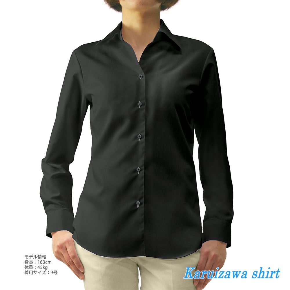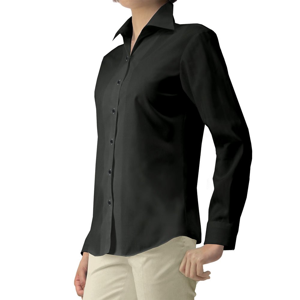オーダーシャツ レディース ワイシャツ 【送料無料】 ブラウス オーダーワイシャツ 長袖 半袖 七分 大きいサイズ スリム らくらく オーダー 日本製 形態安定 軽井沢シャツ スキッパー ブラック無地※クレリック仕様はご遠慮下さい [R30KZA965]