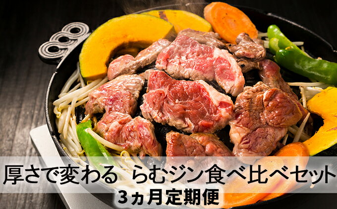 【ふるさと納税】厚さで変わる らむジン食べ比べセット 3ヶ月定期便 【定期便・羊肉・ラム肉・3ヶ月・3回】 羊の旨味たっぷりジンギスカンを3ヶ月連続でお届け! 創業60年素材の旨みを引き出す技!羊肉の旨みだけを残して、クセを消す! お肉の厚さでおいしさが変わる。