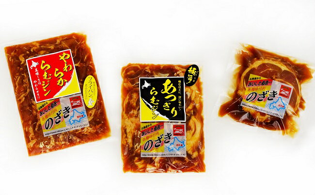 やわらからむジン(1.7ミリの厚さ)、厚切りらむジン(7ミリの厚さ)、味付ラム(2.7ミリの厚さ)の3種セットです。