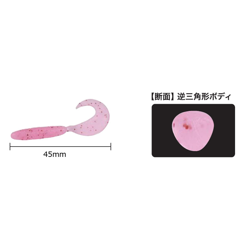 仕様表根魚大好きマイクログラブ「グラッパー」極薄テールなのにアピール抜群!特徴的な逆三角形ボディは綺麗に水流を受け流しスイミング姿勢を安定させることができます。