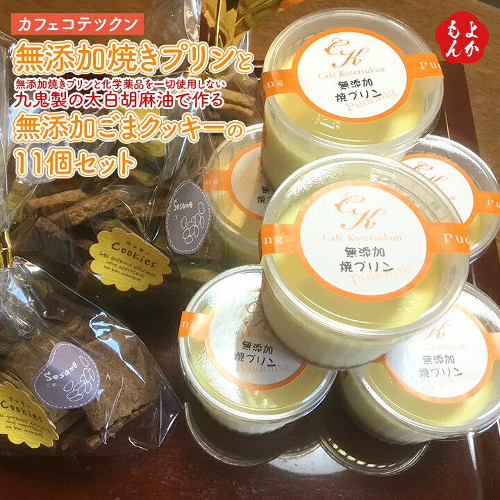 無添加焼きプリンと化学薬品を一切使用しない九鬼製の太白胡麻油で作る無添加ごまクッキーの11個セット【送料無料】カフェコテツクン 九州 福岡 お取り寄せ 福岡県よかもんショップ