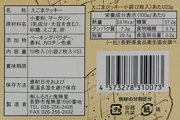 信州鬼無里えごまクッキー10枚入(信州長野のお土産 お菓子 洋菓子 荏胡麻クッキー エゴマ菓子 土産 おみやげ 長野県 銘菓 長野土産 長野お土産 通販)