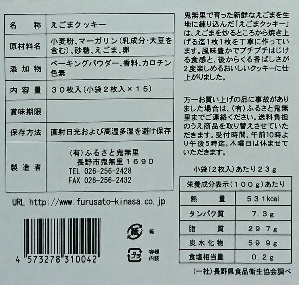 信州鬼無里えごまクッキー 30枚入(信州長野のお土産 お菓子 洋菓子 荏胡麻クッキー エゴマ菓子 土産 おみやげ 長野県 銘菓 長野土産 長野お土産 通販)